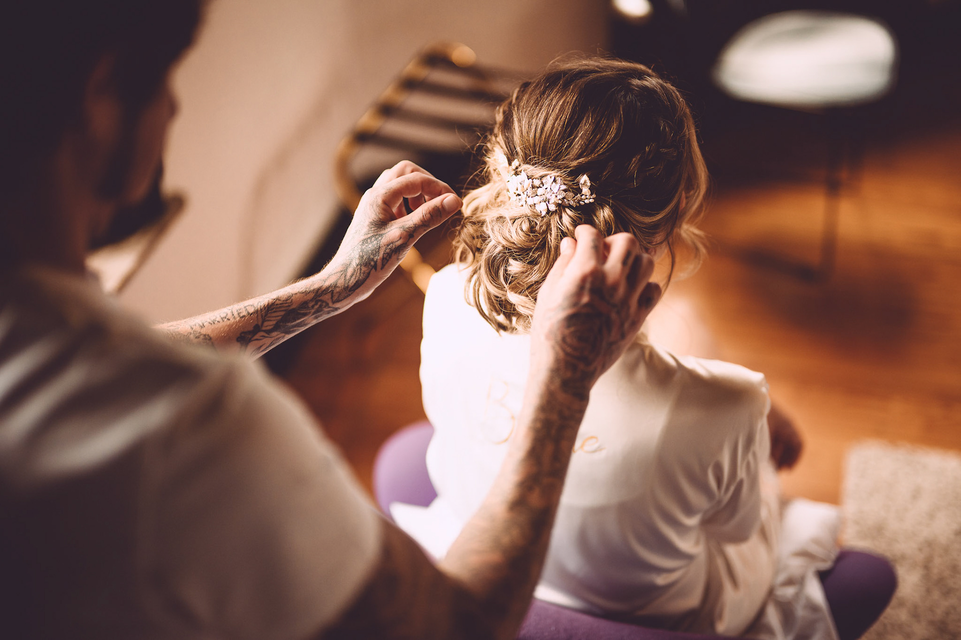 Quelques mois après cette séance, nous arrivons au jour de votre mariage, je commence par vous accompagner dans l'intimité de vos préparatifs respectifs.